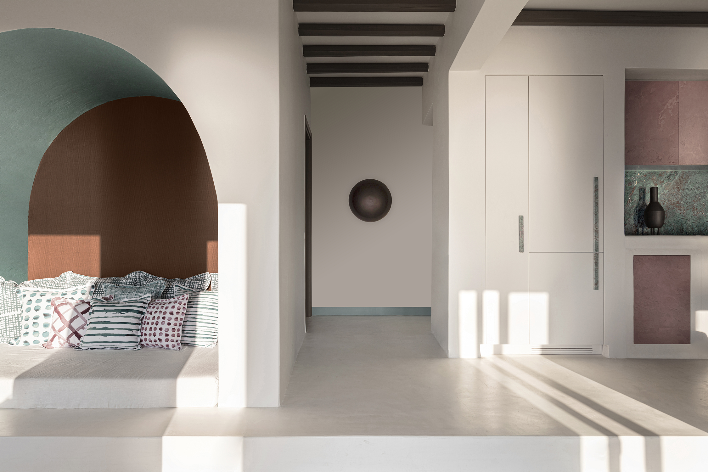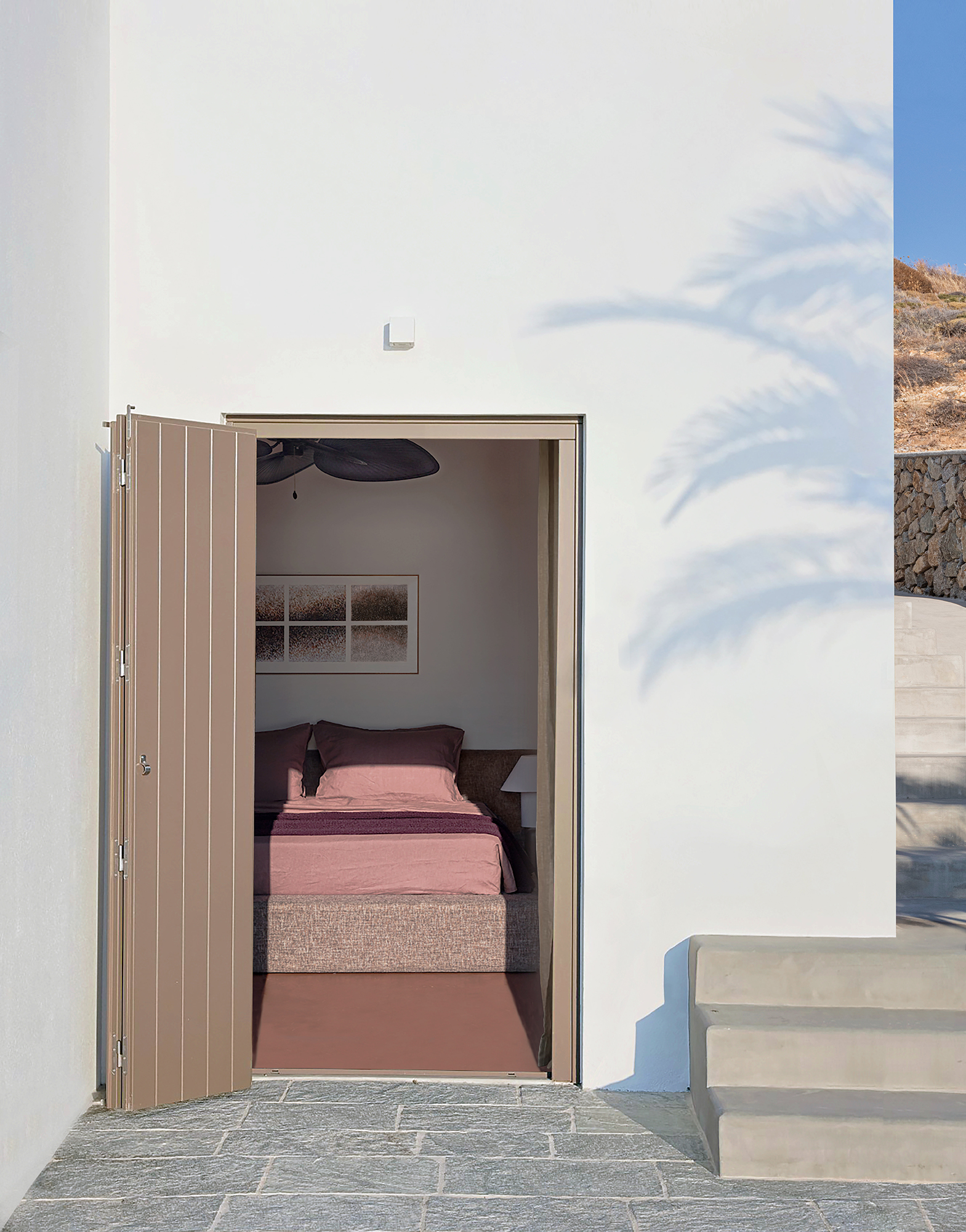 Δύο βήματα πριν από την παραλία του Αγίου Ιωάννη στην Σέριφο βρίσκεται το διμερές οίκισμα Seriphos Estate· απαρτιζόμενο από το Κέλυφος (άνω διαμέρισμα) και το Έδαφος (κάτω διαμέρισμα), αποτελεί προϊόν εκμοντερνισμού, (επανα)σύστασης και εν γένει έμπνευσης από την Κυκλαδίτικη αισθητική. Στον σχεδιασμό εισχωρούν, κατά πολλούς τρόπους και εντάσεις, ο χαρακτηριστικός Ελληνικός ορίζοντας μεταξύ ουρανού και θαλάσσης, το στοιχείο της ξηρής και τραχιάς γης, και κυρίως το λαμπερό καλοκαιρινό φως. Άλλωστε, δεν είναι τυχαίο το γεγονός ότι κοινός παρονομαστής όλων των ονομάτων (Κέλυφος, Έδαφος, Σέριφος) είναι η κατάληξη ‘-phos’, η οποία παραπέμπει, ηχητικά, στη λέξη “φως”. Η εισχώρηση των εν λόγω Κυκλαδίτικων στοιχείων γίνεται μέσω συγκεκριμένων υλικών (τσιμεντοκονία, ασβεστόχρωμα, λινό), επίπλων και χρωματικών παλετών αντίστοιχων των διαφορετικών σημειολογικών στοιχείων κάθε κατοικίας.
